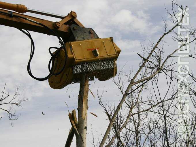срезает и измельчает деревья, кусты и ветки до 25 см в диаметре;