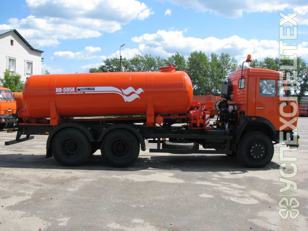 Вакуумная машина КО-505А предназначена для вакуумного забора, транспортировки и слива жидких отходов, не содержащих взрывчатых и горючих веществ.