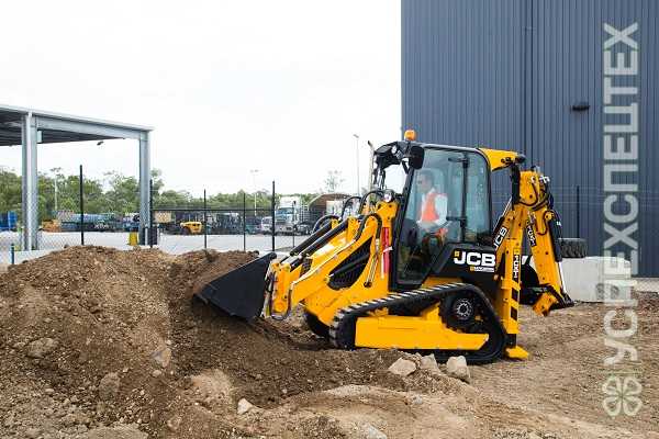 Экскаватор-погрузчик с бортовым поворотом JCB 1 СXT на гусеницах обеспечивает производительность и универсальность двух машин в одном компактном корпусе.