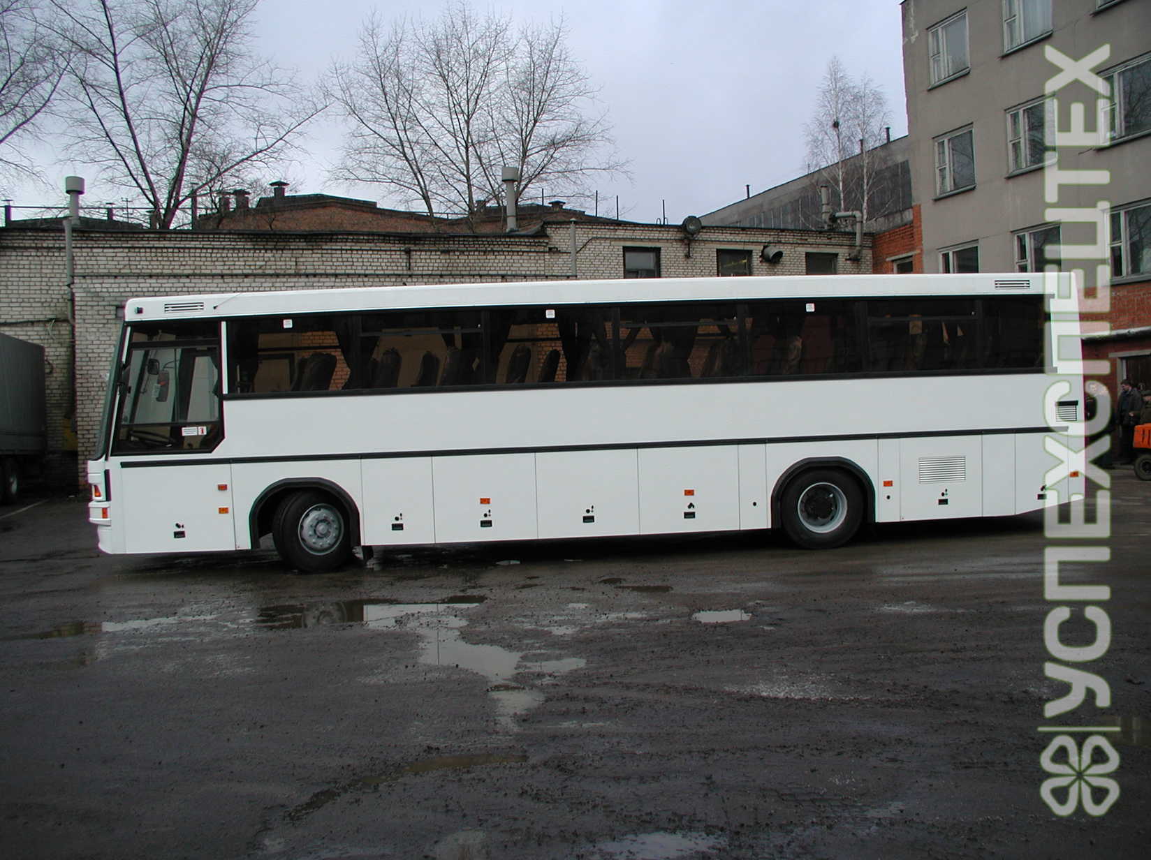 Колея колес (передних/задних), мм 2110/1908 Наружный радиус поворота не более, мм 9000 Высота ступеньки над уровнем дороги, мм 380 Допустимая нагрузка на переднюю ось, кг 4100 Допустимая нагрузка на заднюю ось, кг 5200 Полная масса, кг 18000 Двигатель Cummins ISF3.8s4 168 (Е-4) Мощность двигателя, кВТ (л.с.) 122/166 Коробка передач МКП 6J70T (6ст.) Подвеска передней/задней оси зависимая пневморессорная двухбалонная Ведущий мост жесткая балка с двойной разнесенной передачей Тормозная система пневматическая с системой ABS Объем топливного бака, л 190 Объем бакажного отсека, м3 0,7 Колеса дисковые, 6,75x19.5 Шины 245/70R19.5 КОМПЛЕКТАЦИЯ Независимый жидкостный подогреватель двигателя 30кВт Webasto, используемый для предпускового подогрева двигателя и отопления салона Информационная система Антиблокировочная система тормозов ABS Аудиосистема(с радиооборудованием) Термошумоизоляционное покрытие потолка Крышные вентиляторы 2шт. Аварийно-вентиляционный люк с вентилятором Сиденья водителя импортного производства Сиденья пассажирские мягкие с местами для крепления ремней безопасности Износостойкое покрытие "Автолин" Оцинкованный лист на бортах и крыше Тонирование стекла со сдвижными форточками Шторки в салоне автобуса Сигнализация заднего хода Полки багажные без панелей индивидуального освещения Цифровой тахограф ДОПОЛНИТЕЛЬНАЯ КОМПЛЕКТАЦИЯ ПО ЖЕЛАНИЮ ЗАКАЗЧИКА Окраска автобуса в цвет "Металлик"