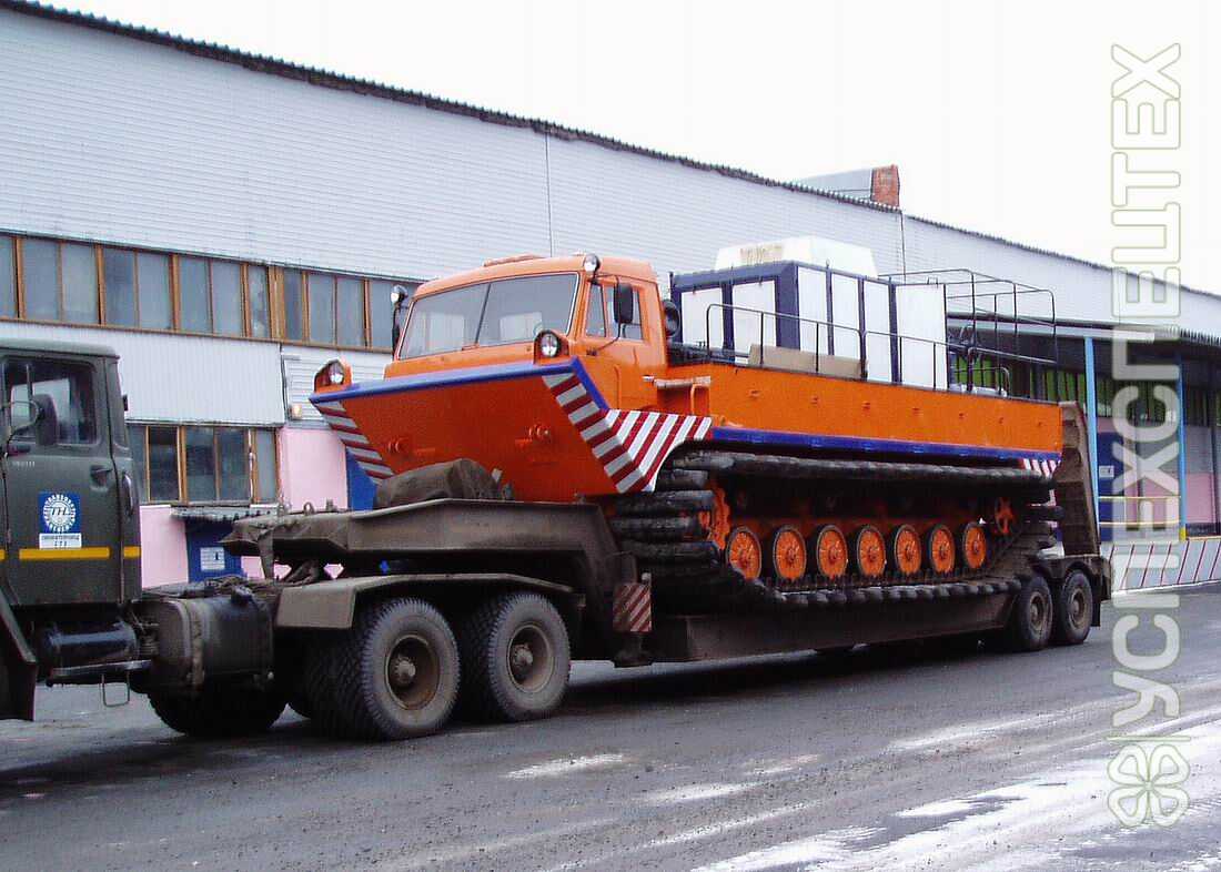 Продукт сертифицирован. Гусеничная плавающая машина высокой прорходимости предназначена для перевозки грузов и монтажа различного оборудования на платформе закрытой тентом. Машина имеет 6-ти местный салон. Организуется 2 полноценных спальных места. По требованию Заказчика машина может быть оборудована погрузо-разгрузочными устройствами. Эксплуатируется на грунтах с низкой несущей способностью, включая снежную целину без ограничения глубины снежного покрова, сыпучие пески, болота всех категорий и открытые водоемы. На большие расстояния машина может транспортироваться в кузове автомобилей типа КАМАЗ, МАЗ.