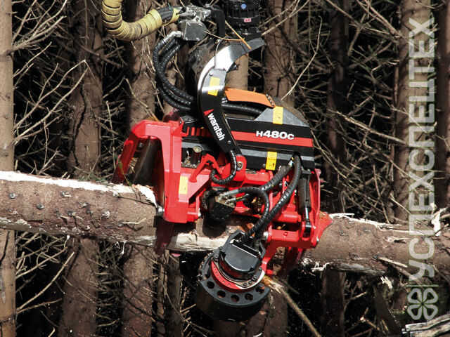 Необходимо обратить внимание на новые функции харвестерной головки: многоскоростные моторы Sampo, объем которых меняется в зависимости от настроек базовой машины, способны менять скорость протяжки от 3 м/с до 7 м/с, а также изменять момент от 25 кН до 42 кН. Таким образом на участках малого диаметра скорость протяжки максимальна, а на крупных диаметрах крутящий момент максимален.