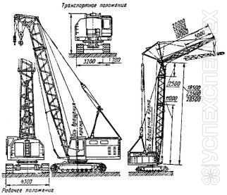 Основную стрелу длиной 16,8 м скциями удлиняют до 21,8, 26,8, 31,8 и 36,8 м. Жесткий гусек 5 м устанавливают на стрелах для вспомогательного подъема.