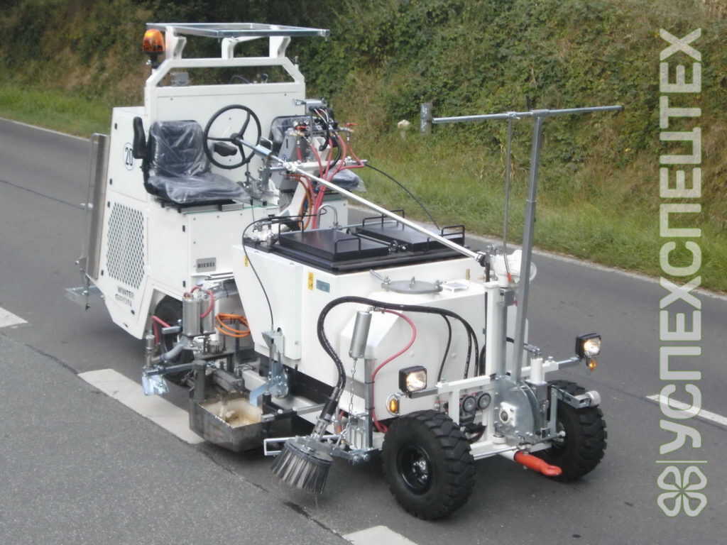 Машина для разметки холодным спрейпластиком. Внутреннее смешивание в смесительной головке. Оснащается разметочным компьютером. Запуск двигателя электростартером. Подача стеклошариков. Скорость передвижения до 16 км/час. Два бака для компонентов и бак для растворителя. Съёмный пистолет для спрейпластика и стеклошариков. Автоматическая промывка.