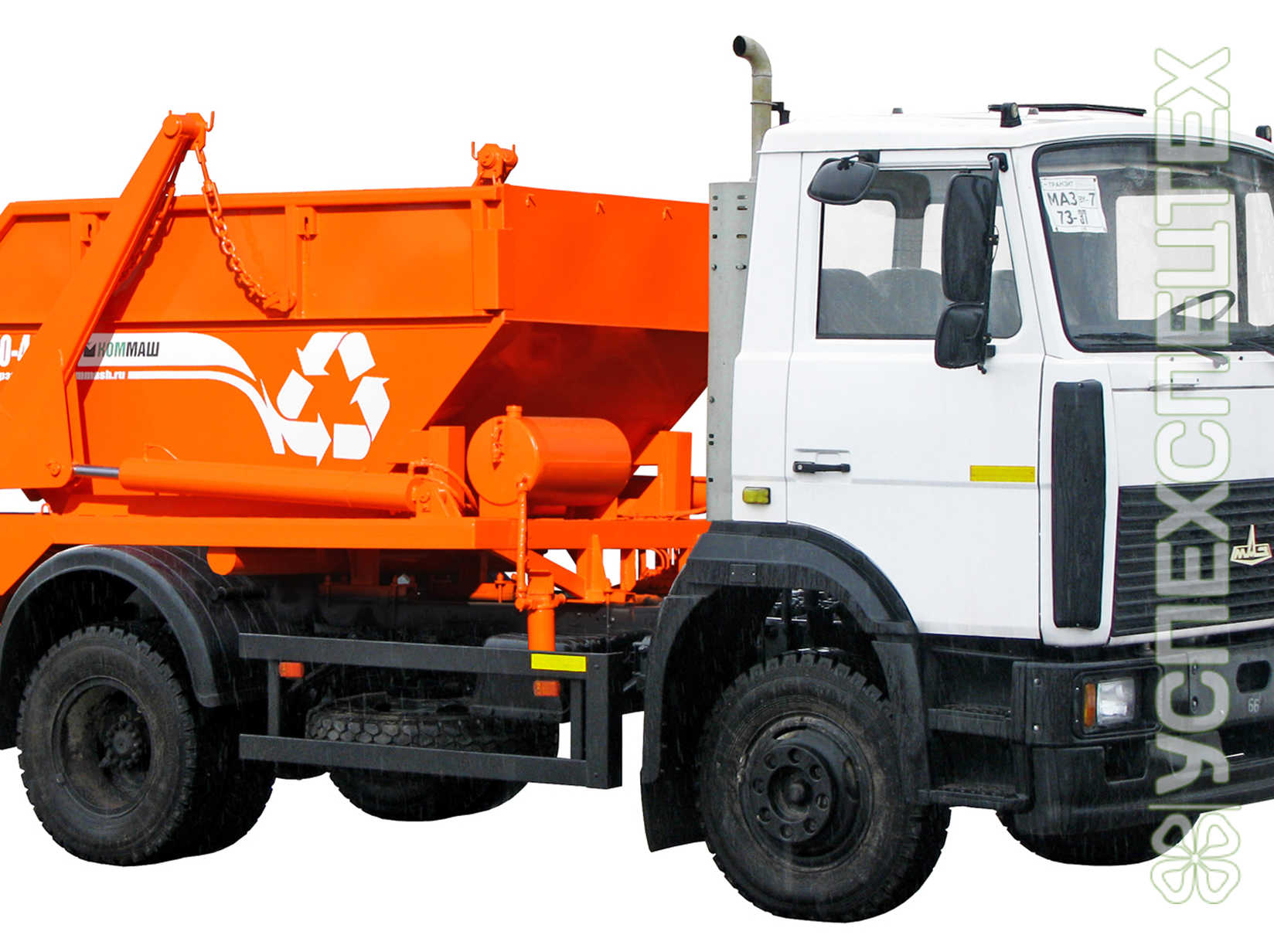 Мусоровоз контейнерный КО-440А1 предназначен для кузовной системы cбора и вывоза крупногабаритного бытового и строительного мусора, а также для перевозки и самосвальной выгрузки различных сыпучих и крупногабаритных грузов.