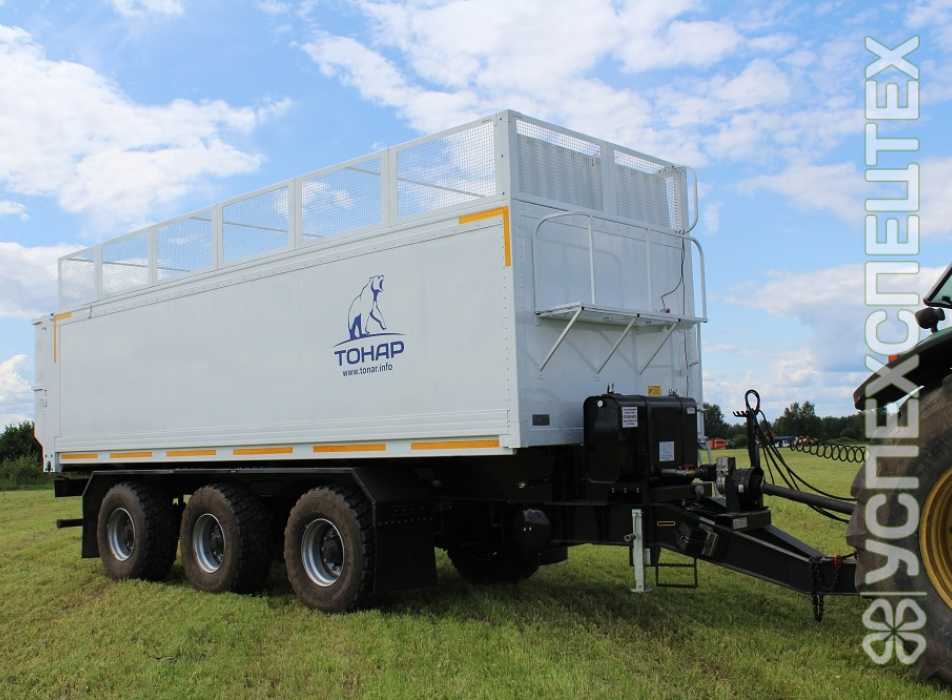 Тракторный прицеп со сдвижными полами и подруливающими осями Прицеп ПТ-3 предназначен для для перевозки силосной массы и навоза, и других насыпных сельскохозяйственных грузов Задний борт прицепа имеет гидравлический привод Прицеп оснащен собственной гидростанцией (с гидробаком 200 литров) Масса перевозимого груза, не более, кг 29 000 Масса снаряженного полуприцепа (прицепа), не более, кг 8 000 Полная масса полуприцепа (прицепа), не более, кг 37 000