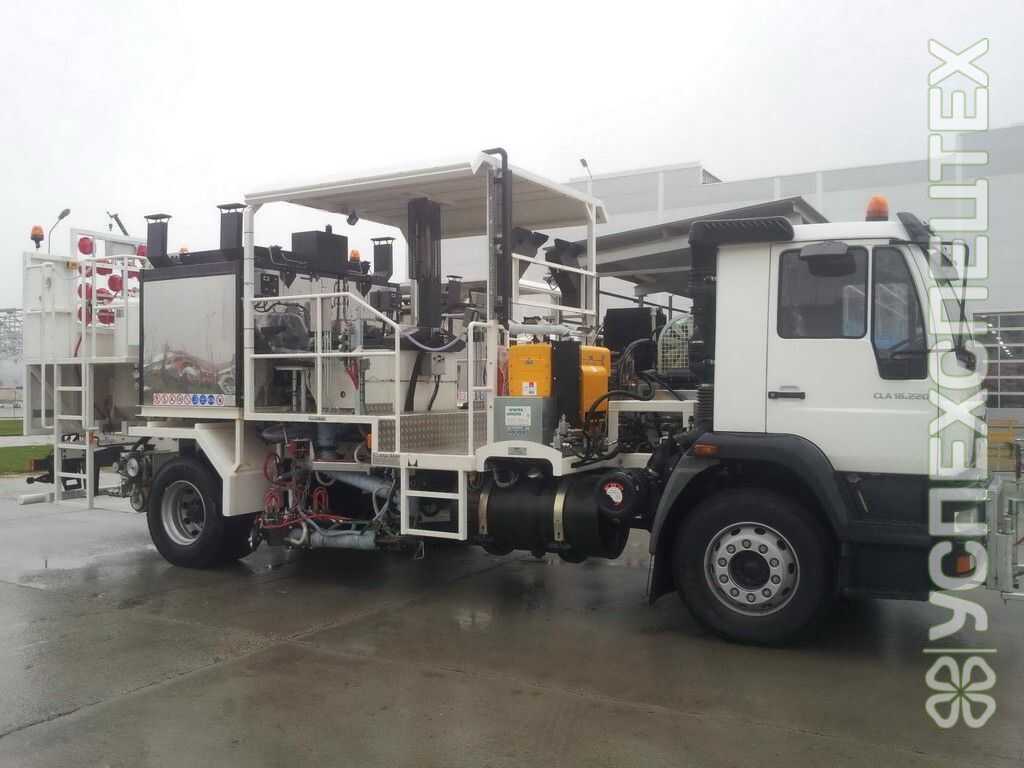 Машина для разметки холодным спрейпластиком. Внутреннее смешивание в смесительной головке. Оснащается разметочным компьютером. Запуск двигателя электростартером. Подача стеклошариков. Скорость передвижения до 16 км/час. Два бака для компонентов и бак для растворителя. Съёмный пистолет для спрейпластика и стеклошариков. Автоматическая промывка.