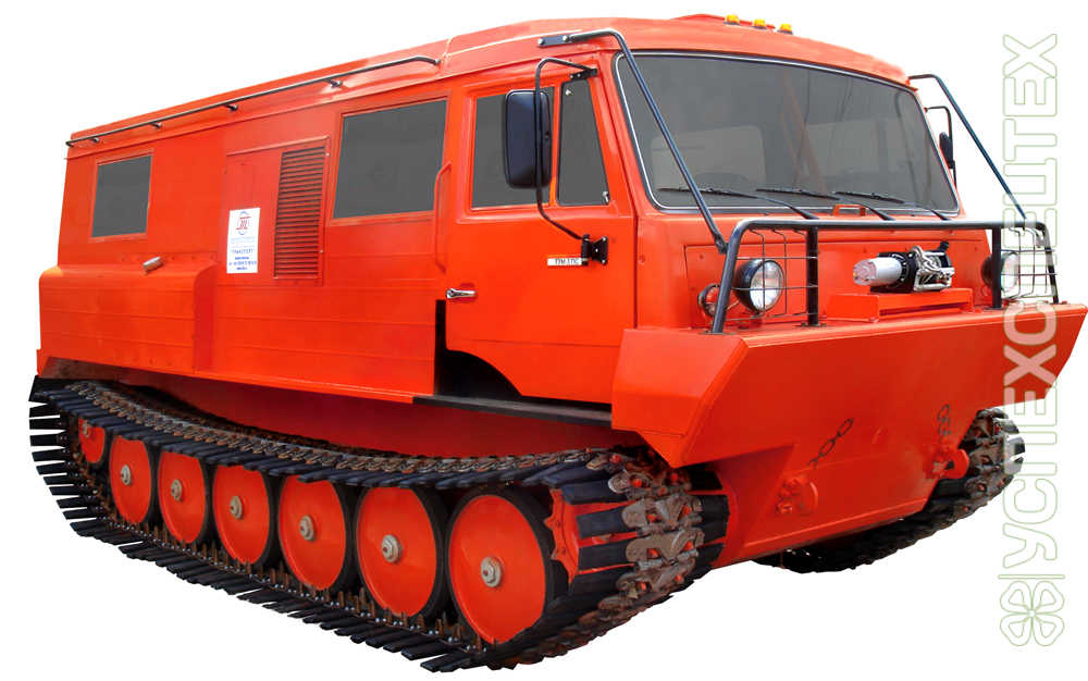 Продукт сертифицирован. Гусеничная плавающая машина высокой прорходимости предназначена для перевозки грузов и монтажа различного оборудования на платформе закрытой тентом. Машина имеет 6-ти местный салон. Организуется 2 полноценных спальных места. По требованию Заказчика машина может быть оборудована погрузо-разгрузочными устройствами. Эксплуатируется на грунтах с низкой несущей способностью, включая снежную целину без ограничения глубины снежного покрова, сыпучие пески, болота всех категорий и открытые водоемы. На большие расстояния машина может транспортироваться в кузове автомобилей типа КАМАЗ, МАЗ.
