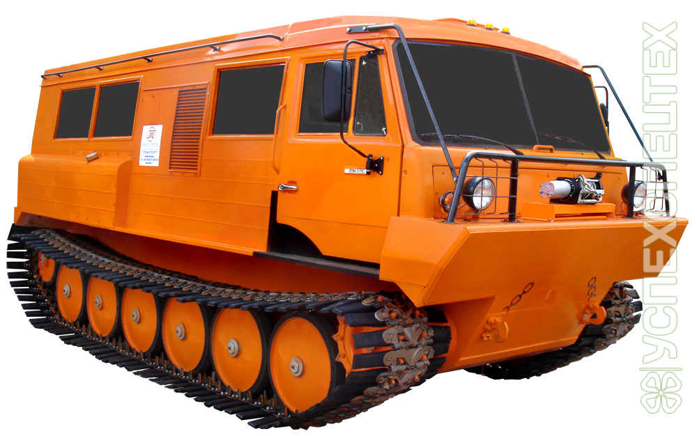 Снаряженная масса, кг 12560. Грузоподъемность полная, кг 4000 (500+3500). Среднее давление на грунт, кг/см2 0,17. Максимальная скорость, км/ч 48. Максимальная скорость на плаву, км/ч 5. Запас топлива, л 800. Количество мест в кабине 6. Количество спальных мест 2. Габаритные размеры (LxBxH), мм 11570х2940х2660 ТТМ вездеход. Ширина по корпусу, мм 2500. Двигатель турбодизель, 300 л.с.. Коробка передач механическая. Преодолеваемый подъем на твердом сухом грунте с полной нагрузкой, не менее 30°. Допускаемый боковой крен на твердом сухом грунте, не менее 25°. Наименьший радиус поворота машины (по середине внутренней гусеницы), м не более 10.