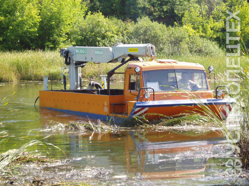 Плавающая машина оснащена крано-манипуляторной установкой ИФ300С-15. Предназначена для погрузки, разгрузки и доставки различных грузов в условиях бездорожья, включая болота всех типов и снежную целину. Для обеспечения устойчивости при работе кран-манипулятор имеет две выдвижные опоры, которые в транспортном положении задвигаются в габарит корпуса и откидываются вверх. Эксплуатируется на грунтах с низкой несущей способностью, включая снежную целину без ограничения глубины снежного покрова, сыпучие пески, болота всех категорий и открытые водоемы.