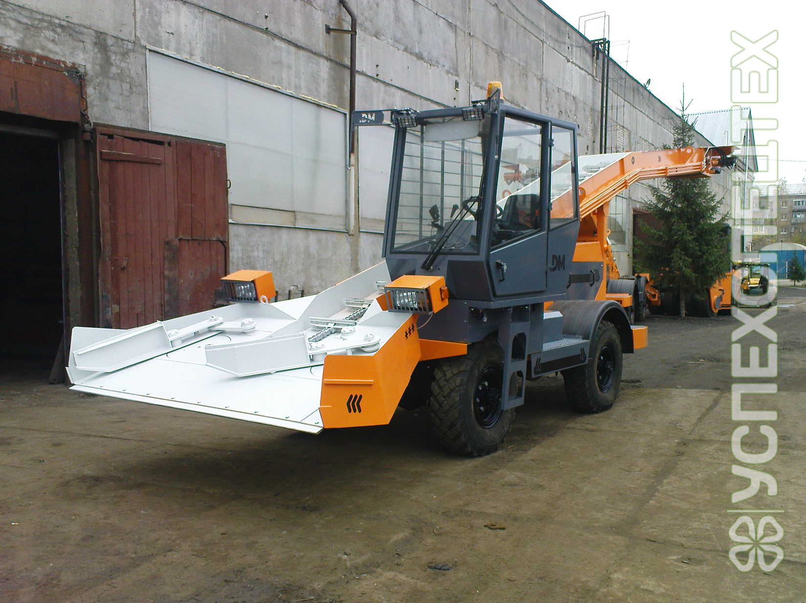 Снегопогрузчик ДМ09 с лаповым питателем и скребковым транспортером предназначен для погрузки предварительно собранного в валы и кучи снега в транспортные средства.