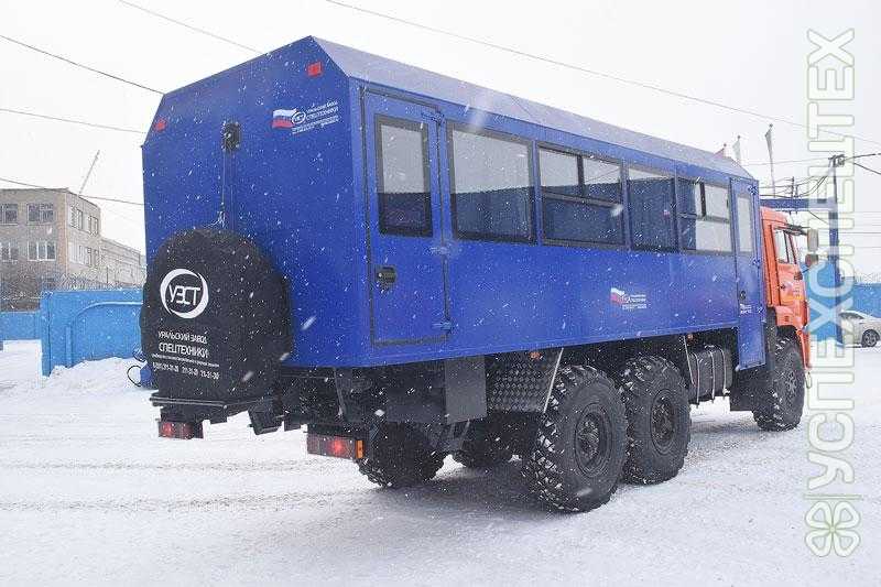 Вахтовый автобус на шасси КАМАЗ 5350 предназначен для перевозки вахтовых бригад по дорогам общей сети.
