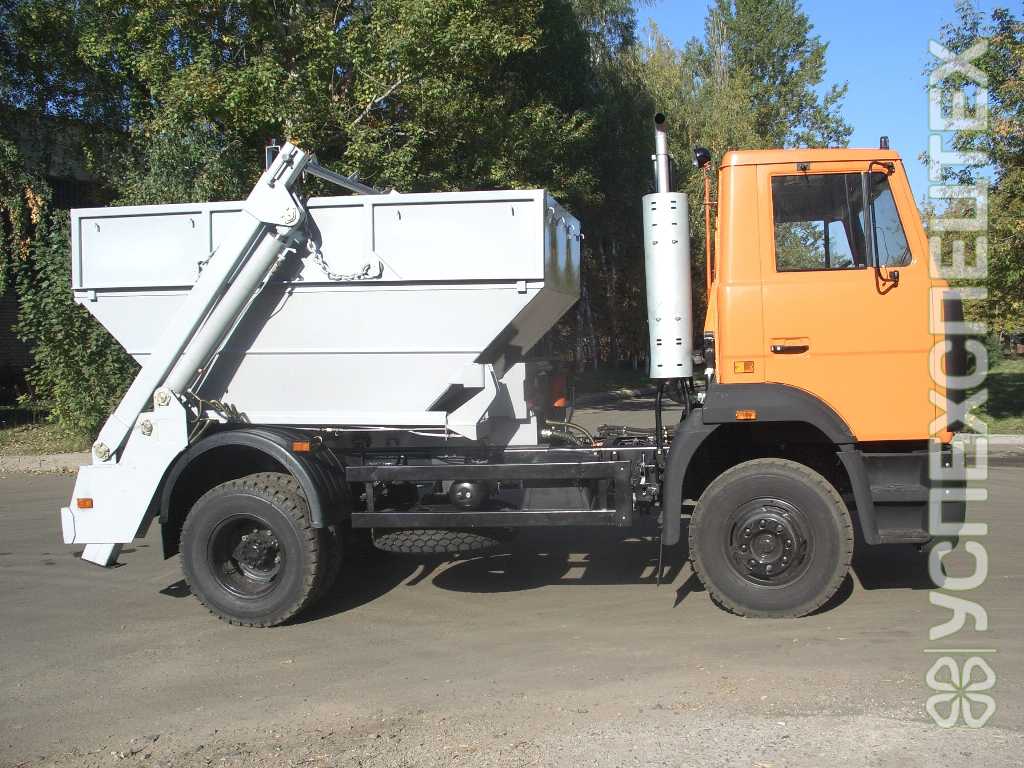 Мусоровоз контейнерный КО-440А1 предназначен для кузовной системы cбора и вывоза крупногабаритного бытового и строительного мусора, а также для перевозки и самосвальной выгрузки различных сыпучих и крупногабаритных грузов.