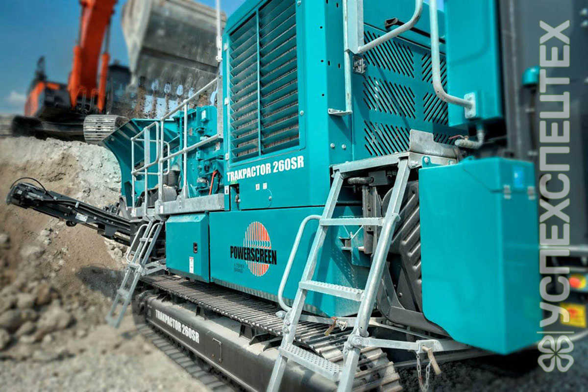 Роторная дробильно-сортировочная установка Powerscreen Trakpactor 260 SR разработана на базе мобильной роторной дробильной установки Trakpactor 260 и представляет собой комбинированную установку для дробления, сортировки и штабелирования готовой продукции, смонтированную на одном шасси с гусеничным ходовым механизмом. Грохот и конвейер мелкой фракции объединены в один съемный модуль. Эта особенность позволяет в считанные минуты превратить дробильно-сортировочную установку в обычную роторную дробилку.