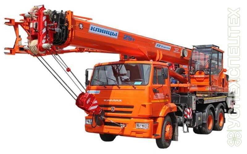 Грузоподъемность 25 тонн, вылет стрелы 22 м. Вездеход.