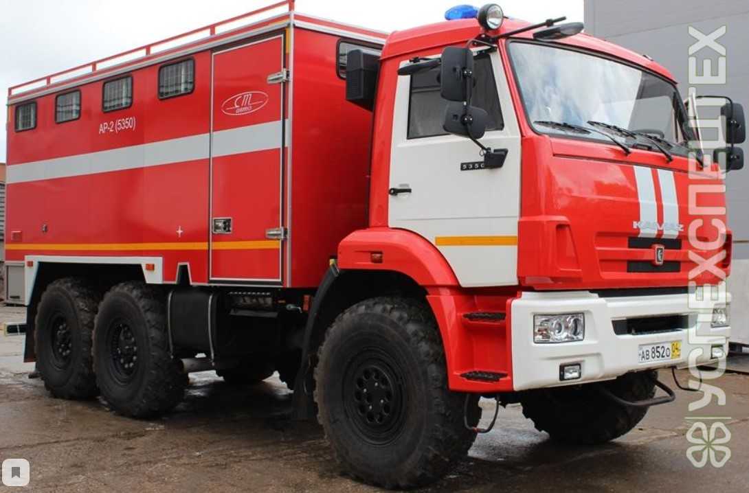 Колесная формула 6х6. Полная масса пожарного автомобиля, кг 16150. Габаритные размеры (ДхШхВ), м 8250х2550х3700. Боевой расчет, включая водителя, чел. 2/3. Пожарный рукавный автомобиль АР-2 на шасси КАМАЗ- это специальный пожарный автомобиль предназначенный для тушения пожаров в населенных пунктах и на промышленных объектах совместно с пожарными автонасосными станциями и служит для доставки к месту пожара боевого расчета, пожарно-технического вооружения, механизированной прокладки и сбора магистральных рукавных линий и подачи в очаг пожара воды или воздушно-механической пены с помощью стационарного лафетного ствола.