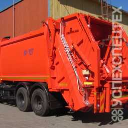 СпецификацияМодель шасси 65115 (6х4) Масса машины полная, кг 25200 Масса спецоборуд., кг 6040 Вместимость кузова, м3 20,0 Масса загружаемых в кузов бытовых отходов, кг до 11770 Грузоподъем. опрокидывателя,кг (для контейнеров объемом до 1,1 м³) 700 Грузоподъемность опрокидывателя, кг ( для контейнеров объемом 8 м³) 2200 Длина,мм 9500 Ширина, мм 2550 Высота, мм 3800 Ключевые преимущества: на 25% повышена эффективность работы мусоровоза; новая прямоугольная -эллиптическая форма кузова имеет увеличенное на 0,48 м² сечение; увеличена прочность прессующей и подающей плит за счет изменения конструкции и применения высокопрочной стали RAEX400; увеличено усилие прессования с 27до 35 тонн за счет изменения конструкции гидроцилиндров; комплектующие гидравлической системы - производство Италии; возможна комплектация с портальным погрузчиком.