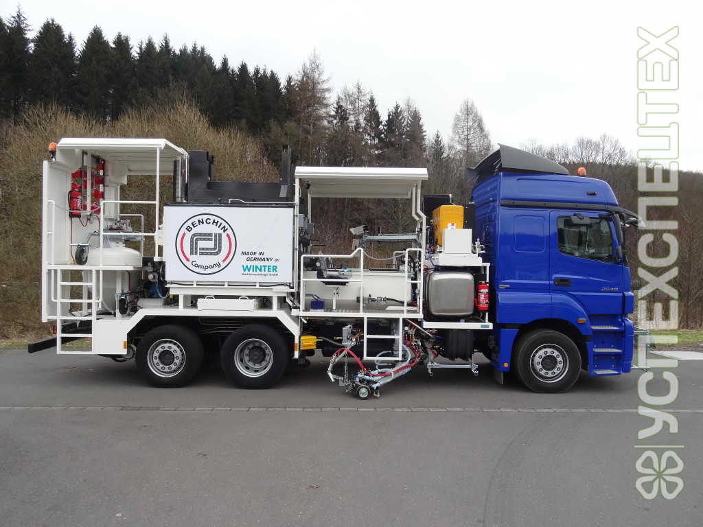 Машина для разметки холодным спрейпластиком. Внутреннее смешивание в смесительной головке. Оснащается разметочным компьютером. Запуск двигателя электростартером. Подача стеклошариков. Скорость передвижения до 16 км/час. Два бака для компонентов и бак для растворителя. Съёмный пистолет для спрейпластика и стеклошариков. Автоматическая промывка.