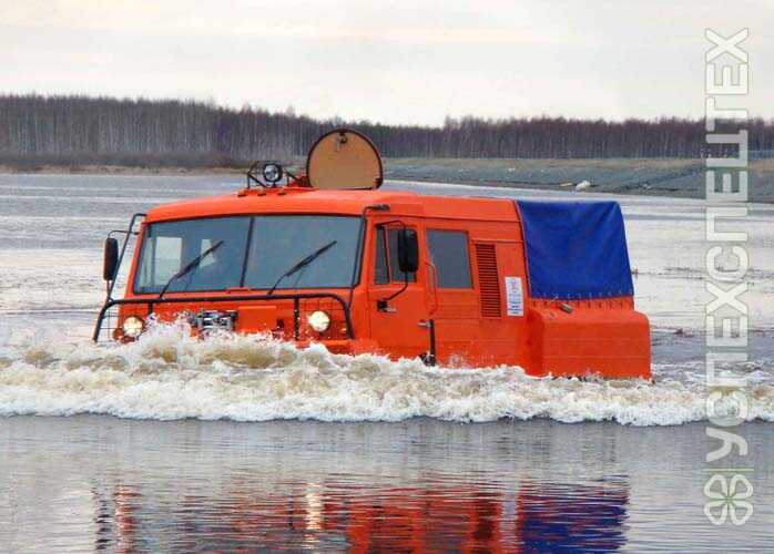 Масса перевозимого груза, кг 1500. Среднее давление на грунт, кг/см2 0,17. Максимальная скорость, км/ч 54. Максимальная скорость на плаву, км/ч 5. Количество мест в кабине 6. Количество спальных мест 2. Размер грузовой платформы (LxB), мм 1900х2200. Габаритные размеры (LxBxH), мм 6330х2940х2900 Габаритные размеры. Ширина по корпусу, мм 2500. Двигатель Cummins-4ISBe185 Турбодизель, Р4, 4,5 л. 185 л.с.. Коробка передач 6-ст, механическая, ZF 6S1000 (Германия). Управление автомобильного типа (рулевое колесо) с гидроусилителем ИЛИ рычажное управление (на выбор). Дополнительное оборудование* Крано-манипуляторная установка ИМ77. Грузовой момент ИМ-77, т*м 7,5. Грузоподъемность нетто крано-манипуляторной установки ИМ-77, кг 3000. Вылет стрелы, м 2,5-6,78. Максимальная высота подъема, м 8. Максимальная глубина опускания, м 4,9. Возможна комплектация люлькой г/п 250 кг., размеры. Преодолеваемый подъем на твердом сухом грунте с полной нагрузкой, не менее 30°. Допускаемый боковой крен на твердом сухом грунте, не менее 25°. Минимальный радиус поворота, м 2,2.