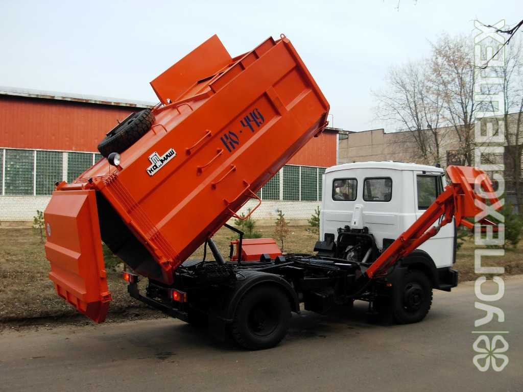 Мусоровоз контейнерный КО-440А1 предназначен для кузовной системы cбора и вывоза крупногабаритного бытового и строительного мусора, а также для перевозки и самосвальной выгрузки различных сыпучих и крупногабаритных грузов.