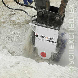 СпецификацияЦепная траншейная фреза EK 800 навешивается на экскаватор массой от 25 до 45 тонн. Цепная фреза EK 800 предназначена для рытья траншей в прочных и каменистых грунтах, а также в горных породах прочностью на одноосное сжатие до 80 МПа. Привод гидромотора траншейной цепной фрезы осуществляется от гидросистемы экскаватора. Требования к гидросистеме экскаватора: давление 300-350 бар; гидропоток 250-300 л/мин.