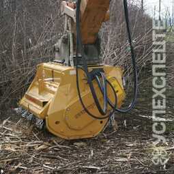 СпецификацияМульчер BMS применяется на гидравлическом экскаваторе массой 13-25 т и параметрами гидросистемы: объемная скорость потока 80 - 260 л/мин, давлением 200 - 350 бар. Это идеальный инструмент когда необходимо расчистить от заросших деревьями и кустарником русла рек, места прокладки трубопроводов, лесные участки и другие труднодоступные места с густой растительностью. Отлично подходит при расчистке участков местности от пней.