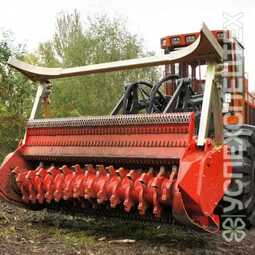 СпецификацияМульчер STARFORST hyd используется на специальных тракторах и шасси c мощной гидросистемой (объемная скорость потока: 200 - 400 л/мин, давление :250 - 350 бар). Производительность оборудования в основном зависит от скорости вращения ротора, а скорость вращения ротора зависит от скорости потока масла, подаваемого гидронасосом шасси, и от размера установленных гидромоторов. Подбор гидромоторов из списка опций производится по характеристикам гидросистемы шасси.