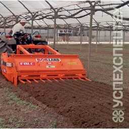 СпецификацияПлуг роторный BobLand создан специально для глубокой обработки почв, предназначенных для выращивания овощей как на открытом грунте, так и в теплицах без оборота пласта. Применяется как навесное оборудование для трактора. Навешивается на заднюю 3-х точечную подвеску категории 2. Требуемая мощность двигателя трактора составляет 80 - 120 л.с. Привод от вала отбора мощности (ВОМ) трактора через карданную передачу. Рабочая скорость обработки почвы составляет 6 км/час. Частота вращения ротора составляет 70 об/мин. Плуг роторный BobLand применяется на почвах средней плотности, легких или песчаных, которые должны быть обработаны даже в условиях высокой влажности, подтопления или затопления. Навоз и удобрения перемешиваются в однородную массу по всей глубине обработки. Глубина рыхления почвы составляет до 35 см.