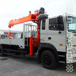 СпецификацияГрузоподъемность а/м 10 000 кг. Колесная формула 4х2. Длина 11,10 метра. Ширина 2,50 метра. Высота 3,70. Характеристики крановой установки Kanglim KS-1056. Тип крановой установки телескопическая, грузоподъемность крана 5 000 кг, максимальный вылет стрелы 17,6 метра, грузоподъемность на вылете 2,40 м 5 000 кг, грузоподъемность на вылете 8,50 м 1 210 кг, грузоподъемность на вылете 12,40 м 450 кг.