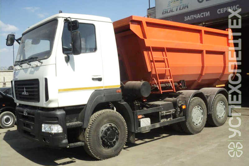 Для перевозки сыпучих грузов кузов оборудован задним откидным бортом с верхней осью вращения. Грузоподъемность 45 тонн.