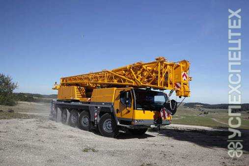 Высокая грузоподъёмность в сочетании с 45-метровой стрелой (плюс удлинитель на 20 метров) — характеристики, благодаря которым автокран Liebherr ltm 1100 пользуется популярностью при проведении строительных работ различной сложности. Грузоподъёмность составляет 100 тонн. Пневматические тормоза и активное управление задними мостами обеспечивают дополнительную безопасность в любых условиях. Кран оборудуется фирменным 6-цилиндровым турбодвигателем мощность 370 кВт. Максимальная скорость движения составляет 80 км/ч. Это одна из самых экономичных и надёжных пятиосных машин в семействе — вы можете выгодно арендовать автокран Liebherr ltm 1100 в компании «АверСтрой».