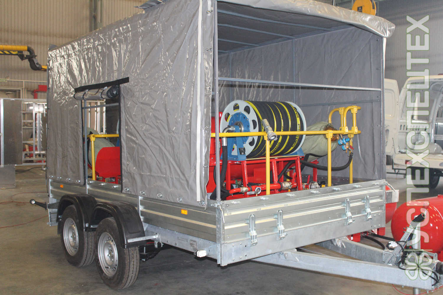 Комплектация: гидравлический аварийно-спасательный инструмент, генератор переменного тока 220V, осветительное оборудование, средства связи и оповещения, набор пневмодомкратов, режущее оборудование, средства защиты органов дыхания, пожарное оборудование. Возможна Комплектация высокоэффективными мобильными установками NATISK.