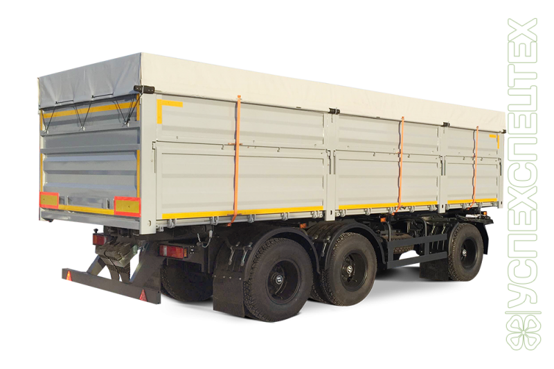 Разгрузка осуществляется на две боковые стороны. Боковые и задние борта платформы сочленены из трех бортов. Верхний борт – подвижный с нижней навеской, может складываться во внутреннюю сторону кузова. Средний борт жестко крепится к стойкам платформы. Нижний борт – подвижный с верхней навеской, шарнирно крепится к нижней кромке верхнего неподвижного борта. Запоры бортов – механические, открываются вручную. Конструкция платформы включает в себя две пары стяжек средних стоек, увеличивающих жесткость кузова в поперечном направлении. В передней части платформы имеется площадка для удобства обслуживания тента.