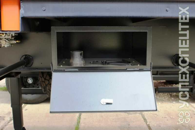 V=22,5 м³. Рессорная подвеска. Грузоподъемность 24,5 тонн. Длинна платформы 12600 мм. Высота ССУ под тягачи 6х4. Двухосный. Шины 9.00R20. Металлический настил пола.
