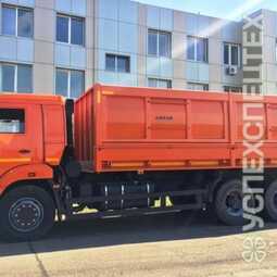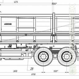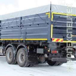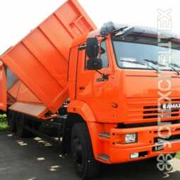 СпецификацияШасси транспортного средства 6520-3072-73(43) Количество осей 3 Категория транспортного средства N3 Габаритные размеры, мм длина 9540 ширина 2550 высота 3630 База, мм 4600+1440 Масса снаряженного транспортного средства, кг 14080 Грузоподъемность 19020 Полная масса транспортного средства, кг 33100 на переднюю ось 7500 на заднюю тележку 25600\ Автомобиль-самосвал предназначен для перевозки различных сыпучих строительных, промышленных и сельскохозяйственных грузов. Разгрузка осуществляется на две боковые стороны и назад. Боковые борта состоят из двух частей с верхней и нижней навеской. Открывание и закрывание нижней части борта на 90˚ производятся вручную. Нижние борта для облегчения закрытия подрессорены. Задний борт выполнен из двух частей в виде распашных ворот с боковой навеской на стойках. открывается на 130° и закрывается вручную. Преимуществом данной конструкции является возможность перевозки длинноменых грузов, а также возможность разгрузки назад с углом опрокидывания платформы 30 градусов.