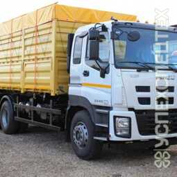 СпецификацияШасси транспортного средства ISUZU CYZ52Q Количество осей 3 Категория транспортного средства N3 Кабина цельнометаллическая, двухдверная, со спальным местом Габаритные размеры, мм длина 10500 ширина 2550 высота 3620 База, мм 4565+1370 Масса снаряженного транспортного средства, кг 12850 Грузоподъемность 20150 Полная масса транспортного средства, кг 33000 на переднюю ось 7370 на заднюю тележку 25630