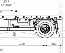 СпецификацияКоличество осей 2 Категория транспортного средства O4 Габаритные размеры, мм длина 7950 ширина 2550 высота 3780 База, мм 3600 Колея передних/задних колес, мм 1850