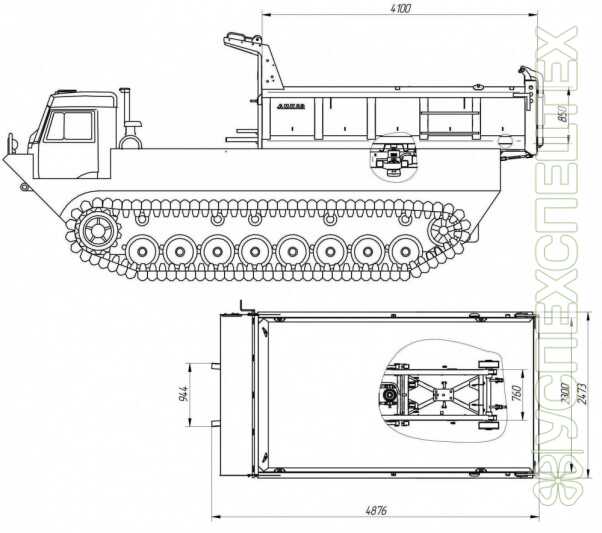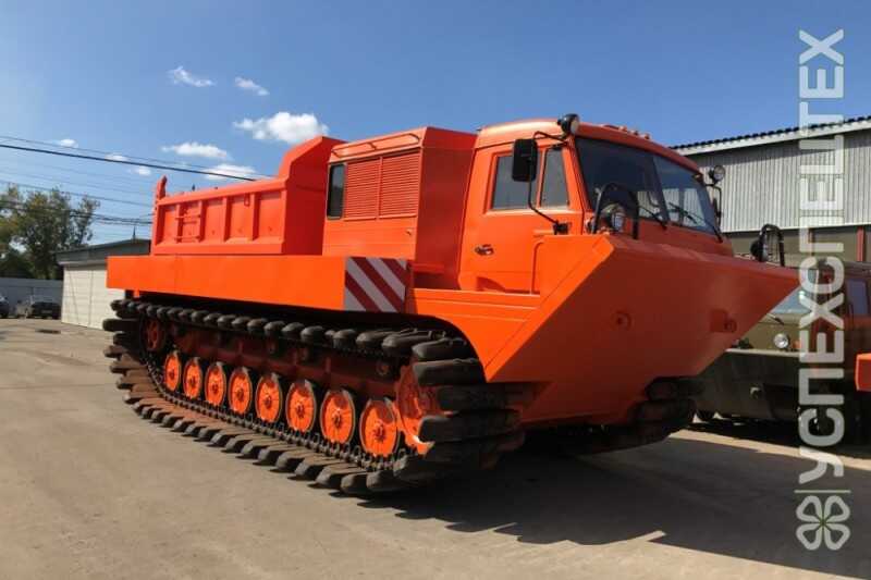 Плавающая транспортно-технологическая машина с гусеницами с резиновыми пневмотраками эксплуатируется на грунтах с низкой несущей способностью, включая снежную целину без ограничения глубины снежного покрова, сыпучие пески, болота всех категорий и открытые водоемы.