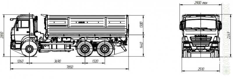 Автомобиль-самосвал предназначен для перевозки различных сыпучих строительных, промышленных и сельскохозяйственных грузов. Разгрузка осуществляется на две боковые стороны. Боковые борта состоят из двух частей с верхней и нижней навеской. Открывание и закрывание нижней части борта на 90˚ производятся вручную. Нижние борта для облегчения закрытия подрессорены. Задний борт выполнен из двух частей в виде распашных ворот с боковой навеской на стойках. открывается на 130° и закрывается вручную. Преимуществом данной конструкции является возможность перевозки длинноменых грузов (вылет за задний габарит не должен превышать установленных ПДД норм), а также возможность разгрузки назад с углом опрокидывания платформы 30 град. В конструкции автомобиля имеются гнезда, предназначенные для установки надставных бортов, каркаса с тентом. Возможна установка уплотнений бортов для перевозки сыпучих грузов мелкой фракции (пример: зерно).