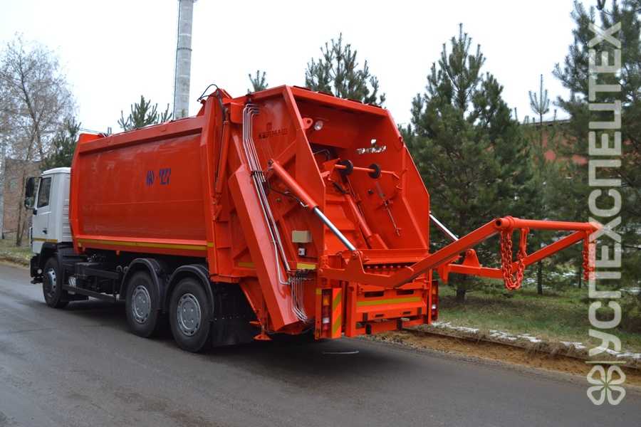 В состав специального оборудования входят: кузов, задний борт, толкающая плита, боковой манипулятор, гидравлическая и электрическая системы.