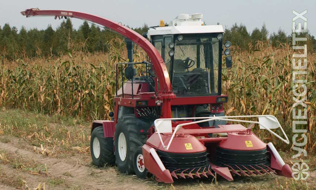 Жатка для трав. Система копирования рельефа поля и установка высоты среза гарантирует одинаково ровный срез. Обгонная муфта шкива привода мотовила предотвращает повреждение мотовила при обратном вращении шкива. Комплексы К-Г-6 комплектуется подборщиками шириной захвата 2,2 и 3,0 м, которые обеспечивают подбор валков без потерь скошенной массы. Одной из особенностей комбайна «ДЕСНА-ПОЛЕСЬЕ FH40» является измельчающий аппарат радиально-дискового типа, который обеспечивает максимально высокое качество измельчения листостебельной массы. Жатка для грубостебельных культур способна убирать кукурузу любой высоты и урожайности, независимо от схем и способов посева. Равномерный срез обеспечивается системой копирования рельефа и установкой высоты среза. Стебли кукурузы подаются в питающий аппарат нижней частью, что предотвращает потери початков. Боковые делители разделяют растения на краю загонки и поднимают полеглые растения.