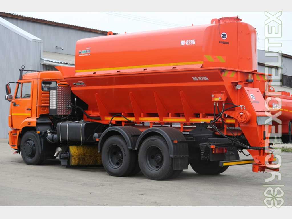 Комбинированная дорожная машина КО-829СМ предназначена для круглогодичного обслуживания городских и магистральных дорог с асфальтовым и бетонным покрытием при температуре окружающего воздуха от минус 20 ⁰С до плюс 40 ⁰С, может использовться в качастве самосвала.