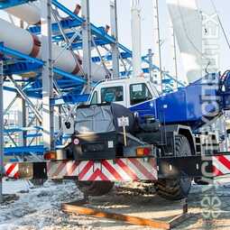 СпецификацияГрузоподъемность крана 80 тонн 5-секционная стрела 12,0-47,0 м 2-ступенчатый складывающийся вдвое гусек 10,1/17,7 м Максимальная высота подъема 47,1 м (стрела) 64,4 м (гусек) Максимальный вылет стрелы 41,2 м (стрела) 53,9 м (гусек) Минимальное выдвижение аутригеров 2,7 м Максимальное выдвижение аутригеров 7,3 м Модель двигателя MITSUBISHI 6M60-TL Рабочий объем цилиндра 7545 см3 Макс. мощность 200 кВт при 2600 мин-1 (об/мин) Макс. крутящий момент 785 Нм при 1400 мин-1 (об/мин) Максимальная скорость передвижения 36 км/ Общая длина 14 375 мм Общая ширина 3315 мм Общая высота 3795 мм Мин. радиус поворота (от центра самого отстоящего колеса) Привод на 2 колеса 11,9 м Привод на 4 колеса 6,8 м Четыре режима рулевого управления