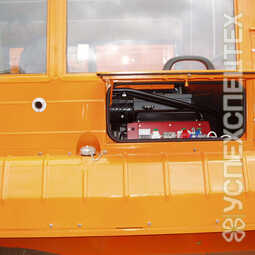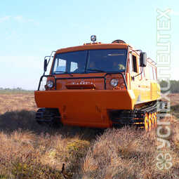 СпецификацияСнаряженная масса, кг 7350. Среднее давление на грунт, кг/см2 0,17. Максимальная скорость, км/ч 54. Максимальная скорость на плаву, км/ч 5. Количество мест в кабине 6. Количество спальных мест 2. Габаритные размеры (LxBxH), мм 6480х2940х2600. Внутренние размеры рабочего салона(LxBxH), мм 2400х2200х1900. Ширина по корпусу, мм 2500. Двигатель Cummins-4ISBe185 Турбодизель, Р4, 4,5 л., 185 л.с.. Коробка передач 6-ст., механическая, ZF 6S1000 (Германия). Управление автомобильного типа (рулевое колесо) с гидроусилителем ИЛИ рычажное управление (на выбор). Преодолеваемый подъем на твердом сухом грунте с полной нагрузкой, ° не менее 30. Допускаемый боковой крен на твердом сухом грунте, ° не менее 25. Минимальный радиус поворота, м 2,2.
