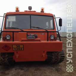 СпецификацияСнаряженная масса, кг 7050. Объем перевозимых светлых нефтепродуктов, л 1500. Среднее давление на грунт, кг/см2 0,166. Максимальная скорость, км/ч 54. Максимальная скорость на плаву, км/ч 5. Количество мест в кабине 6. Количество спальных мест 2. Габаритные размеры (LxBxH), мм 6480х2940х2600 Габаритные размеры. Ширина по корпусу, мм 2500. Двигатель Cummins-4ISBe185 Турбодизель, Р4, 4,5 л., 185 л.с.. Коробка передач 6-ст., механическая, ZF 6S1000 (Германия). Управление автомобильного типа (рулевое колесо) с гидроусилителем ИЛИ рычажное управление (на выбор). Оборудование для перевозки светлых нефтепродуктов * Емкость 1500 или 2х750 л.. Донный клапан ДКП-90. Электронасос BENZA 31-24-57ФР. Счётчик учёта В807. Преодолеваемый подъем на твердом сухом грунте с полной нагрузкой, не менее 30°. Допускаемый боковой крен на твердом сухом грунте, не менее 25°. Минимальный радиус поворота, м 2,2.