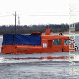 СпецификацияСнаряженная масса, кг 6850. Грузоподъемность, кг 2500. Среднее давление на грунт, кг/см2 0,17. Максимальная скорость, км/ч 54. Максимальная скорость на плаву, км/ч 5. Количество мест в салоне 14. Количество спальных мест 6. Запас топлива, л. 400. Размеры пассажирского салона (LxBxH), мм 2400х2200х1900. Габаритные размеры (LxBxH), мм 6480x2940x2600. Ширина по корпусу, мм 2500. Двигатель Cummins-4ISBe185 турбодизель, Р4, 4,5 л., 185 л.с.. Коробка передач 6-ст., механическая, ZF 6S1000 (Германия). Управление автомобильного типа (рулевое колесо) с гидроусилителем. Преодолеваемый подъем на твердом сухом грунте с полной нагрузкой, ° не менее 30. Допускаемый боковой крен на твердом сухом грунте, ° не менее 25. Минимальный радиус поворота, м 2,2.