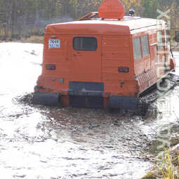 СпецификацияСнаряженная масса, кг 6680. Грузоподъемность, кг 1700. Среднее давление на грунт, кг/см2 0,153. Максимальная скорость, км/ч 45. Максимальная скорость на плаву, км/ч 5. Количество мест в салоне 14. Количество спальных мест 6. Запас топлива, л. 400. Размеры пассажирского салона (LxBxH), мм 2400х2200х1900. Габаритные размеры (LxBxH), мм 6480x2940x2600. Ширина по корпусу, мм 2500. Управление рычажного типа. Двигатель Д245.9 турбодизель, Р4, 4,75 л., 136 л.с.. Коробка передач 5-ст, механическая. Преодолеваемый подъем на твердом сухом грунте с полной нагрузкой, не менее 30°. Допускаемый боковой крен на твердом сухом грунте, не менее 25°. Минимальный радиус поворота, м 2,2.