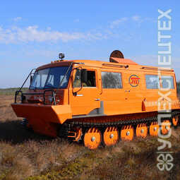 СпецификацияСнаряженная масса, кг 6670. Среднее давление на грунт, кг/см2 0,13-0,15. Максимальная скорость, км/ч 45. Максимальная скорость на плаву, км/ч 5. Количество мест в салоне в зависимости от компоновки. Размеры штабного (VIP) салона (LxBxH), мм 2100х2200х1900. Габаритные размеры (LxBxH), мм 6480х2940х2600 ТТМ. Ширина по корпусу, мм 2500. Двигатель Д245.9 Турбодизель, Р4, 4,75 л., 136 л.с.. Коробка передач 5-ст., механическая. Управление рычажного типа. Преодолеваемый подъем на твердом сухом грунте с полной нагрузкой, не менее 30°. Допускаемый боковой крен на твердом сухом грунте, не менее 25°. Минимальный радиус поворота, м 2,2.