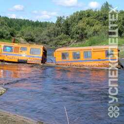СпецификацияСнаряженная масса, кг 12560. Грузоподъемность полная, кг 4000 (500+3500). Среднее давление на грунт, кг/см2 0,17. Максимальная скорость, км/ч 48. Максимальная скорость на плаву, км/ч 5. Запас топлива, л 800. Количество мест в кабине 6. Количество спальных мест 2. Габаритные размеры (LxBxH), мм 11570х2940х2660 ТТМ вездеход. Ширина по корпусу, мм 2500. Двигатель турбодизель, 300 л.с.. Коробка передач механическая. Преодолеваемый подъем на твердом сухом грунте с полной нагрузкой, не менее 30°. Допускаемый боковой крен на твердом сухом грунте, не менее 25°. Наименьший радиус поворота машины (по середине внутренней гусеницы), м не более 10.