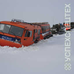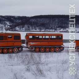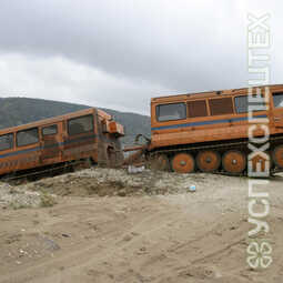 СпецификацияСнаряженная масса, кг 13060. Грузоподъемность, кг 3500 (500+3000). Среднее давление на грунт, кг/см2 0,17. Максимальная скорость, км/ч 48. Запас топлива, л 800. Максимальная скорость на плаву, км/ч 5. Количество мест в кабине до 22. Количество спальных мест 9. Габаритные размеры (LxBxH), мм 11570х2940х2660 вездеход. Ширина по корпусу, мм 2500. Двигатель турбодизель, 300 л.с.. Коробка передач механическая. Преодолеваемый подъем на твердом сухом грунте с полной нагрузкой, не менее 30°. Допускаемый боковой крен на твердом сухом грунте, не менее 25°. Наименьший радиус поворота машины (по середине внутренней гусеницы), м не более 10
